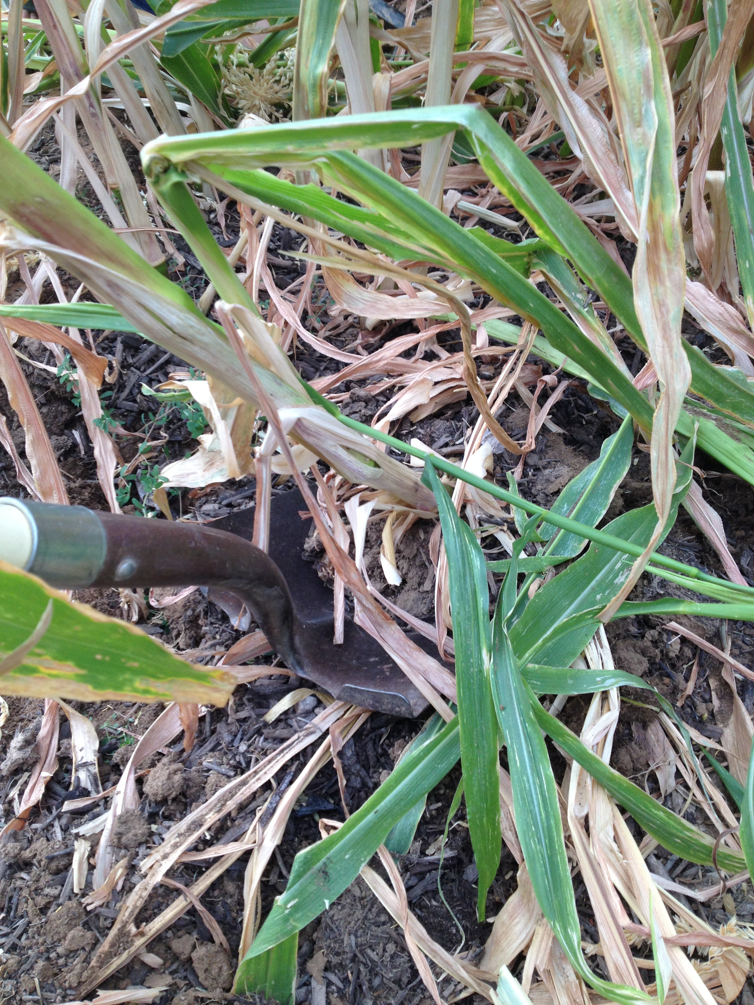• Thanks for the info, Caleb, that was all good stuff. Yes, the corn definitely had prop roots. Holy cow were those things stuck in the ground. I noticed that when the corn was falling over it wasn’t at the base, but was further up the stalk, which also leads me to some type of nutrient deficiency (which gives me an odd guilty feeling, like I’m a bad parent or something). The potassium makes a lot of sense (if corn cobs are high in potassium), because of the picture with the mangled cob. I had preloaded the area in advance with about 10 cubic feet of just aged manure and some additional compost, but maybe potassium was still lacking. I definitely think watering was an issue and part of the plan for next year (which I’ll have to put a post up to cover) will involve a better “basin” to be able to flood the corn for watering. Pollination was definitely an issue as well, I would do some hand pollinating next year. Many of the big Ag farms around here do plant two crops a year. The second one hasn’t gone in yet, but I expect to see them any time now. As always I appreciate the thoughtful advice and would love any follow ups if you get an epiphany.