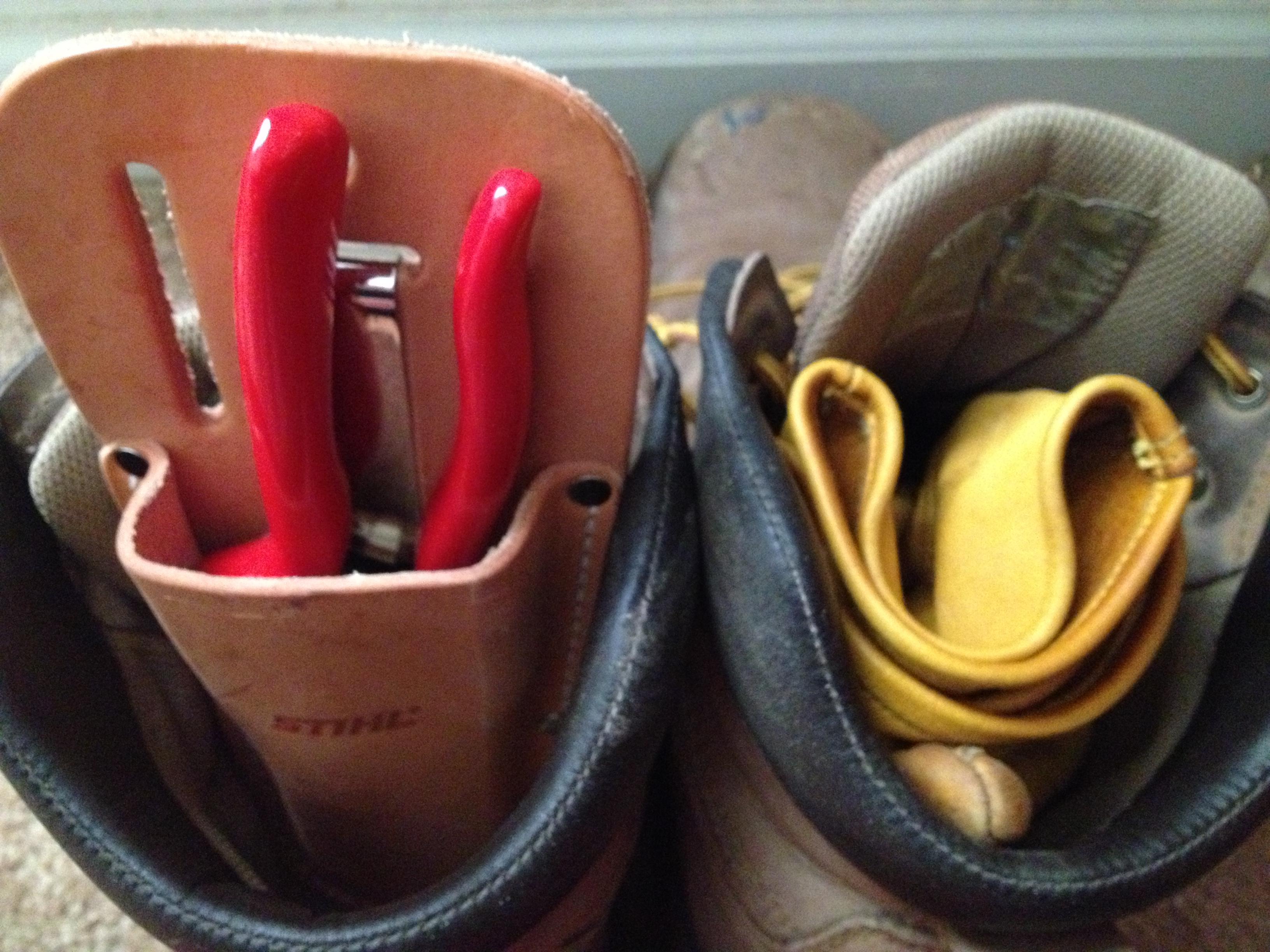 This used to be my morning attire for harvesting all kinds of goodness.  Now they are my implements of doom and death.