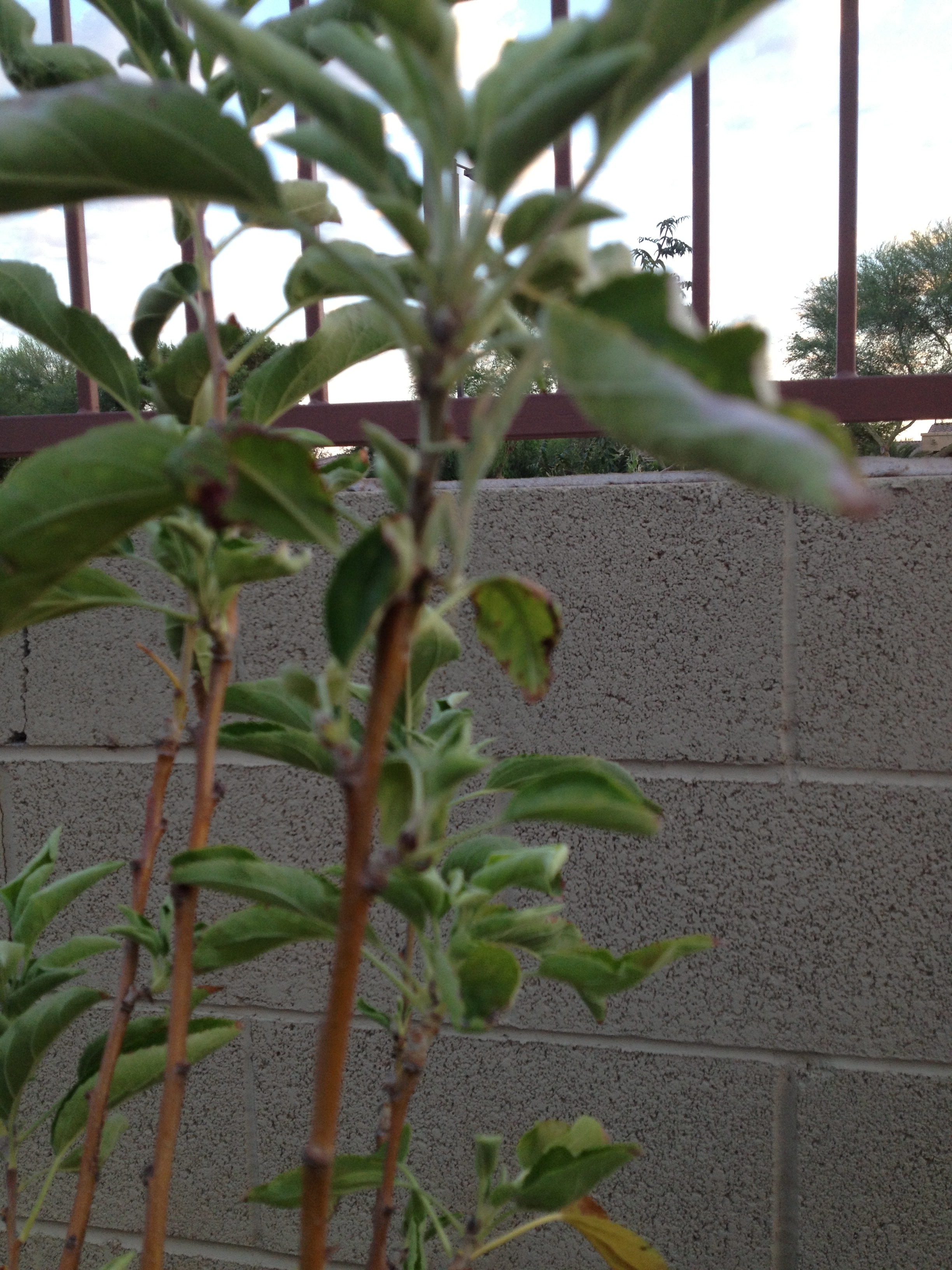 Here is a really blurry picture of a mantis that has been living in one of our little apple trees.