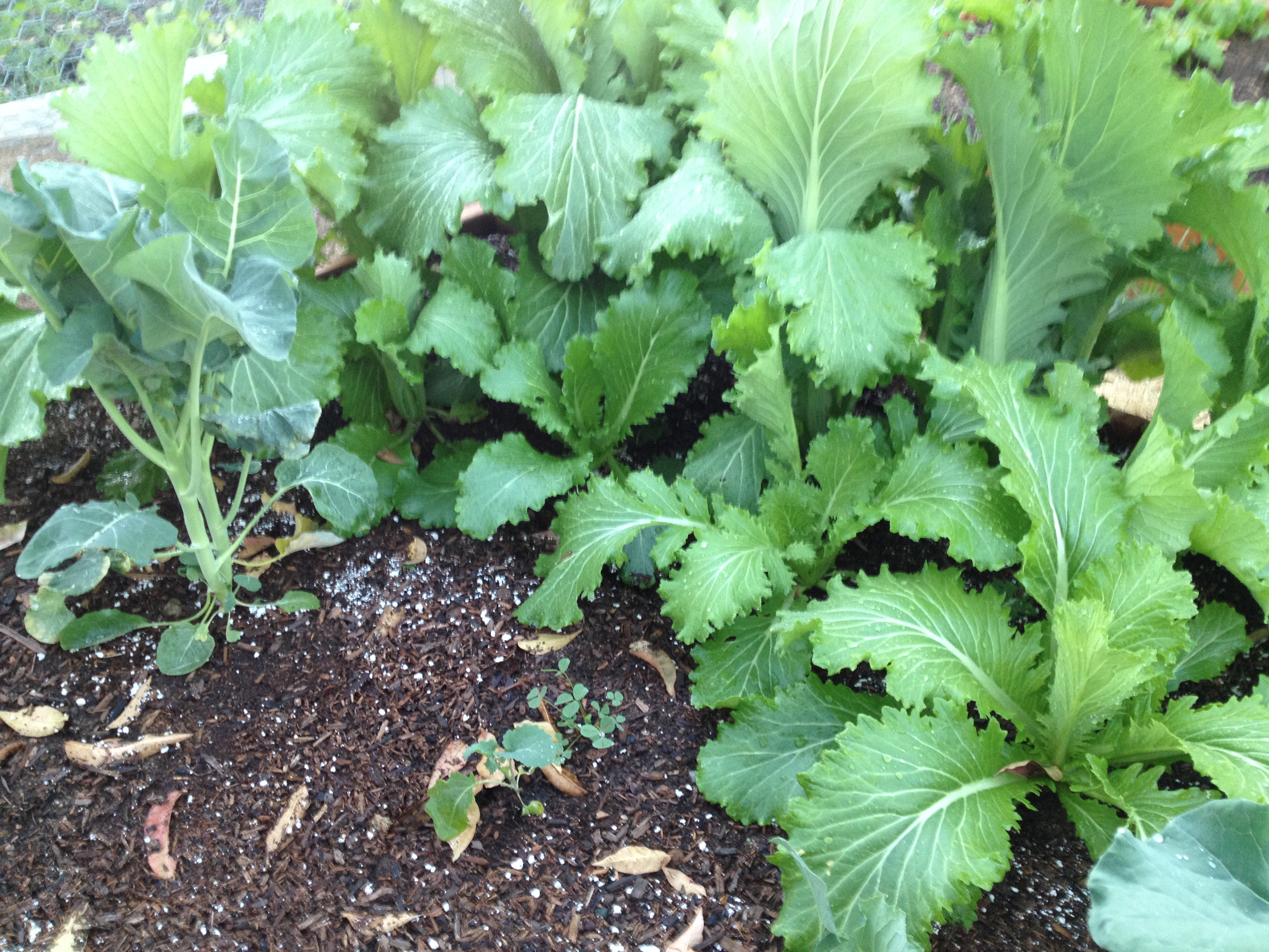 The winter garden, or what is left after some neglect, is eeking through the season.  The sun almost completely leaves our back yard around the end of December and then slowly starts to show itself again.  I’ve actually tried reflectors and things to get more light on the garden, but I mainly end up annoying myself and probably the neighbors.  The plants that started growing during the fall just kind of… pause… then resume growing when they have decent light to do it.