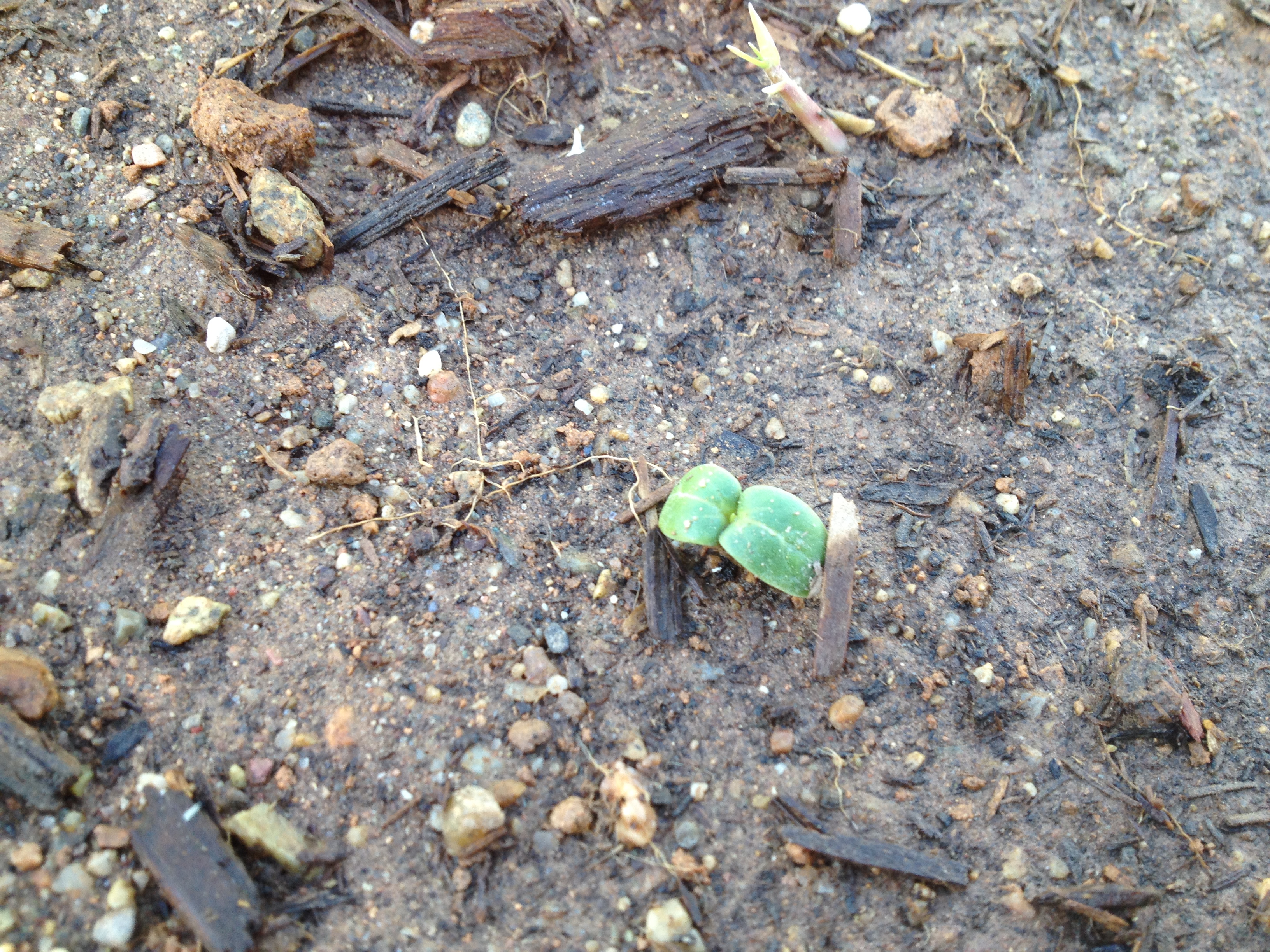 Okay, here is one of the cucumber sprouts and one of the OTT sprouts, or is it the OTT sprout and the cucumber sprout… amazing how similar certain sprouts look until they get their first real leaves. Any guesses?