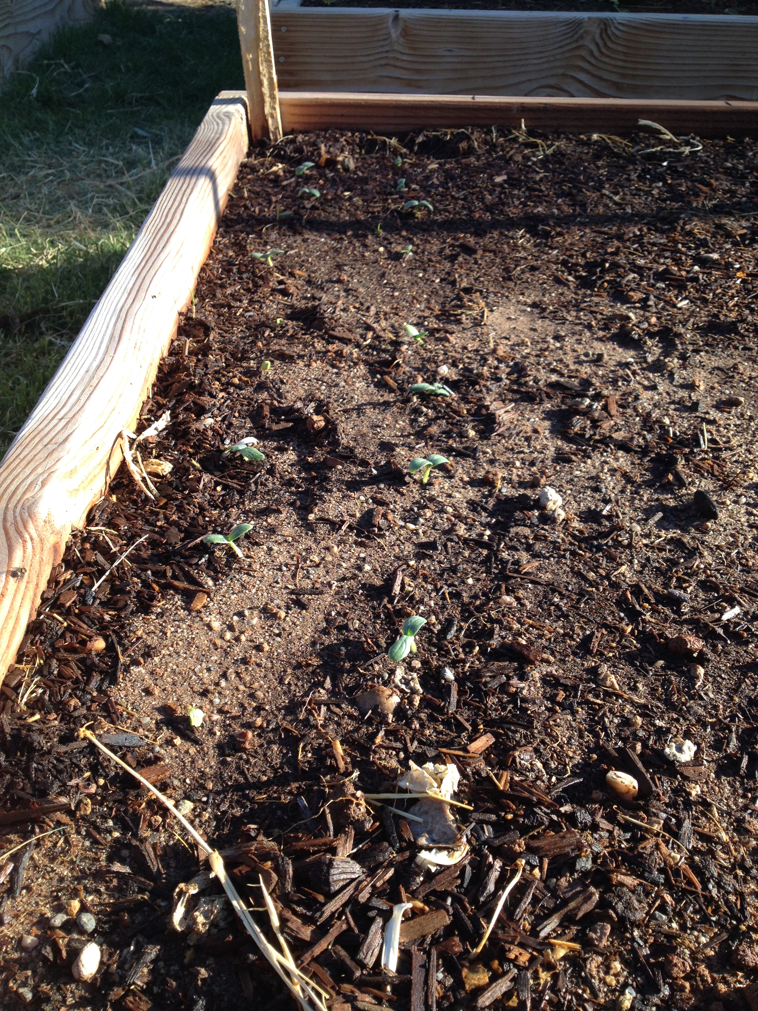 I’ve got some gaps in my beans; seeds that decided not to sprout.  Hmmm… need to fill the gaps.