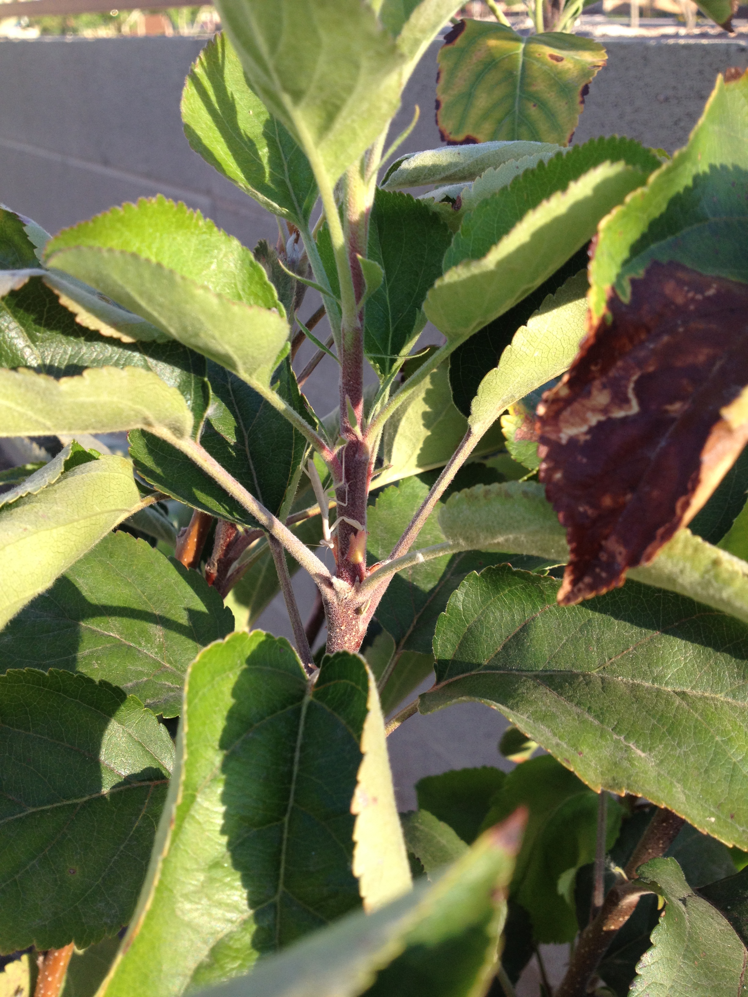 I found this little guy this morning while I was looking at the apple blossoms.  He’s read to protect the fruit should it decide to form.  Do you see him?