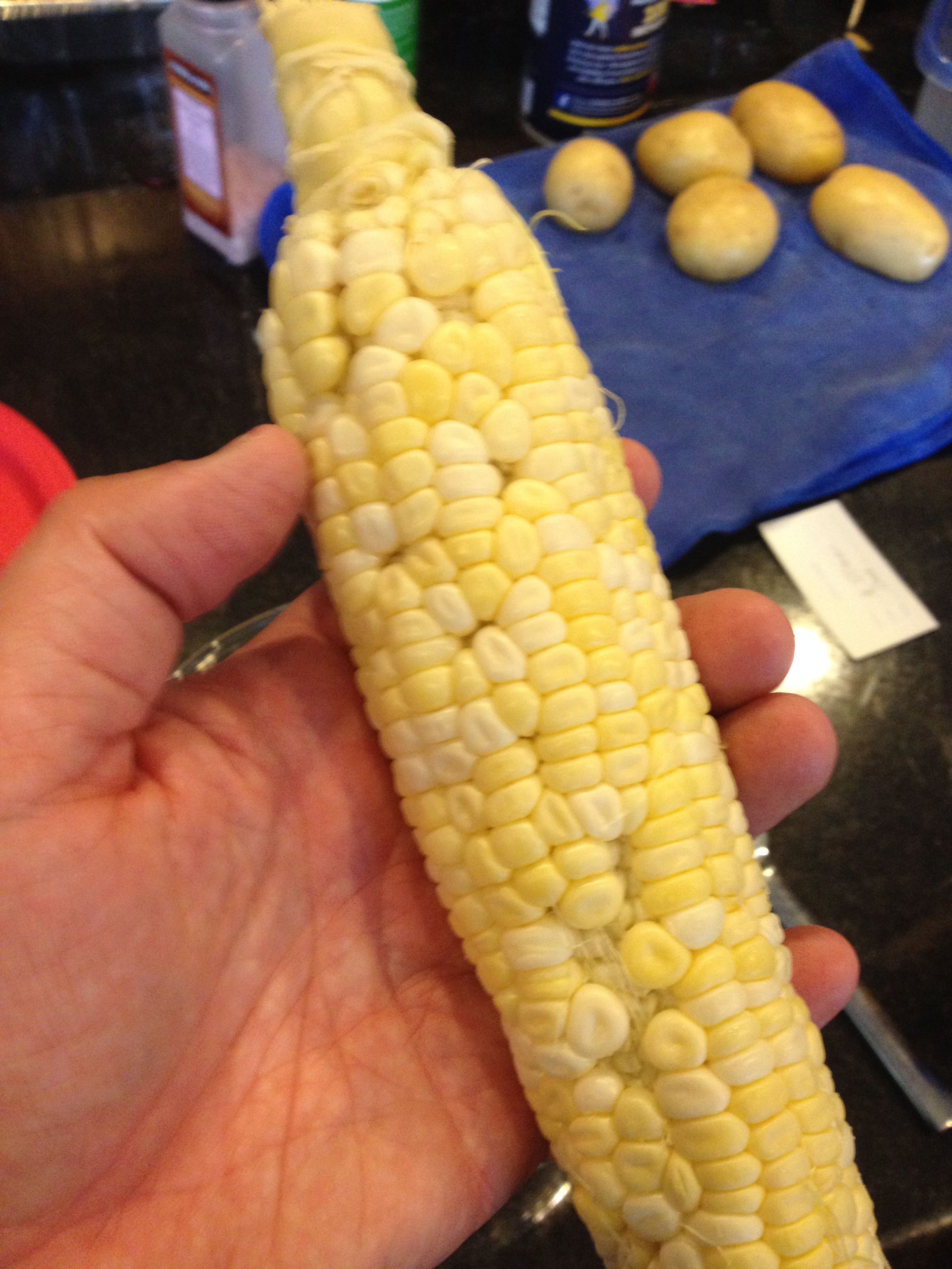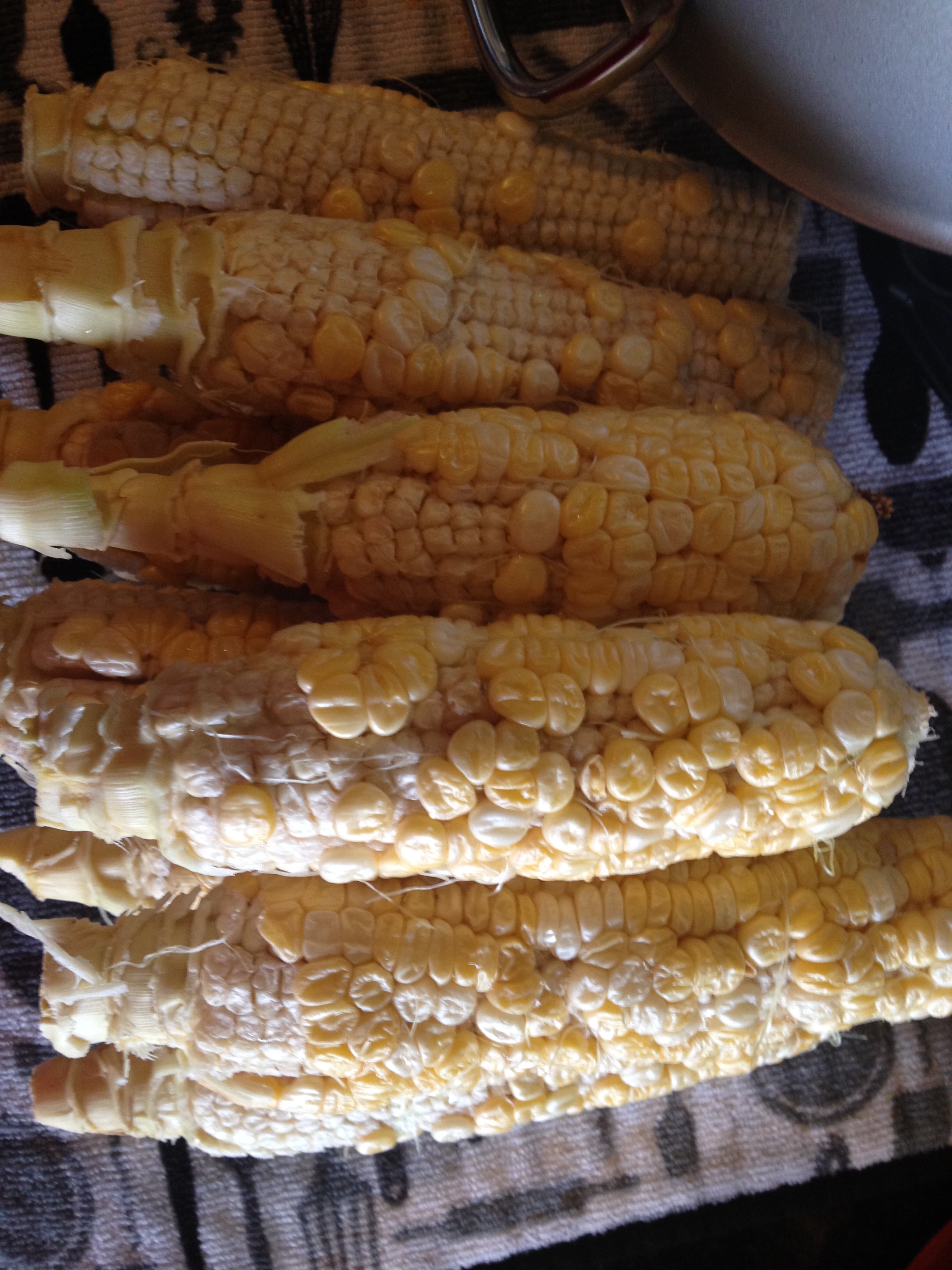 The kernels are a little bit dimpled.  I’m not sure if this is from leaving them on the stalk toO long or not enough water or… But they tasted good.