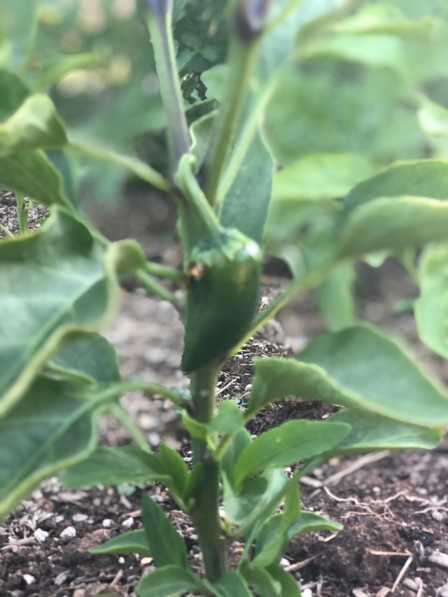 Will this be the first pepper of the season? I hope so. I can taste the spicy pickled peppers that my family loves now. Hopefully this one and others will mature to something edible. We’ve had some poaching of first fruits this season. A squirrel. A gopher. Maybe other things. Hard to say. I’ve got measures in place to take out the pests but so far I have not been successful. Lord, please bless the garden, that it may bring forth fruit for my family.